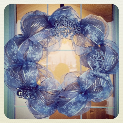 My 1st start with X-Mas decor begins with the front door of course! The silver wreath is our front door wreath. I still think it's missing a little something light blue, which I'll find & add later.